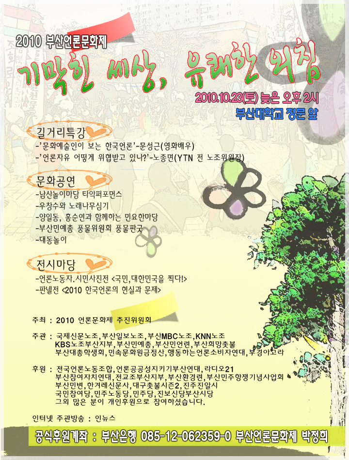 제10회 부산언론문화제<기막힌 세상, 유쾌한 외침> 작성자 부산민예총홈페이지 이름으로 검색홈페이지 이름으로 검색 작성일10-10-19 11:29 조회8,494회 댓글0건 수정 삭제 목록 제10회 부산언론문화제<기막힌 세상, 유쾌한 외침> , 많은 관심 바랍니다.^^ 페이스북 공유 트위터 공유 댓글목록 등록된 댓글이 없습니다. 수정 삭제 목록