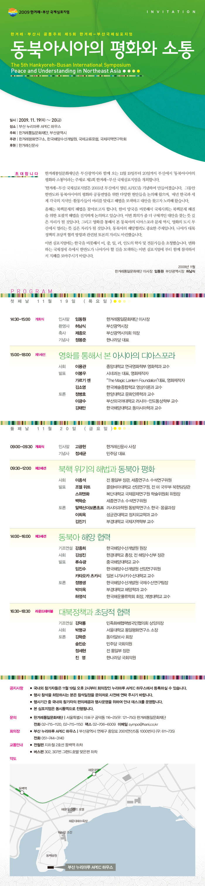 [2009 부산 국제심포지엄]'동북아시아의 평화와 소통'에 초대합니다.