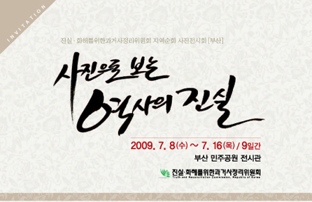 진실화해위원회는 2009년 7월 8일(수)부터 16일(목)까지 9일간 부산 민주공원 3층 기획전시실에서 사진전시회를 개최한다.